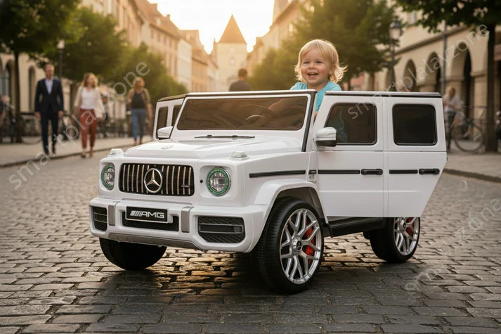 Kids Mercedes G63 G wagon 12v Ride on Car SUV with Remote - White - With High Doors