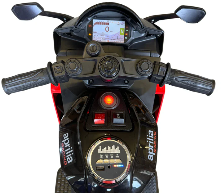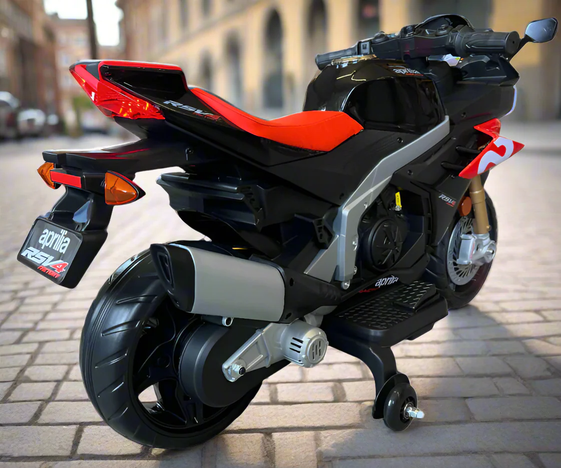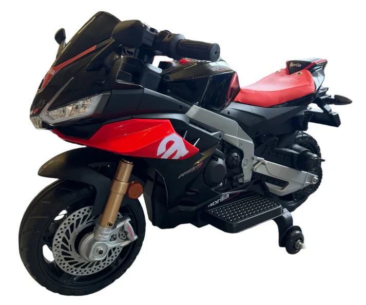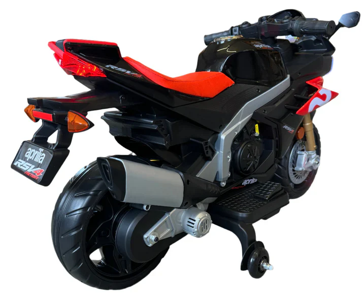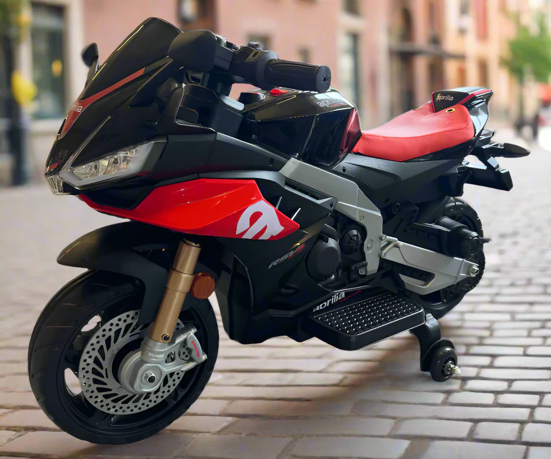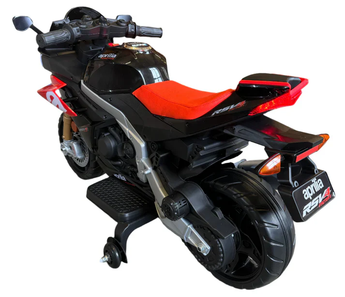 Aprilia RSV4 12V Ride On Kids Bike with Stabilisers - Red - Leather Seats EVA Wheels