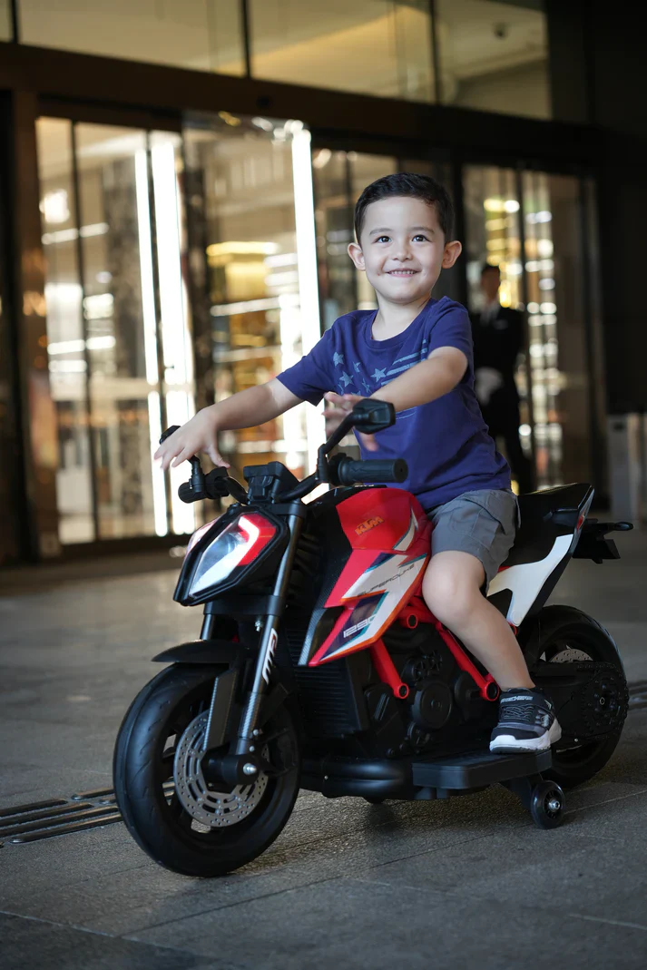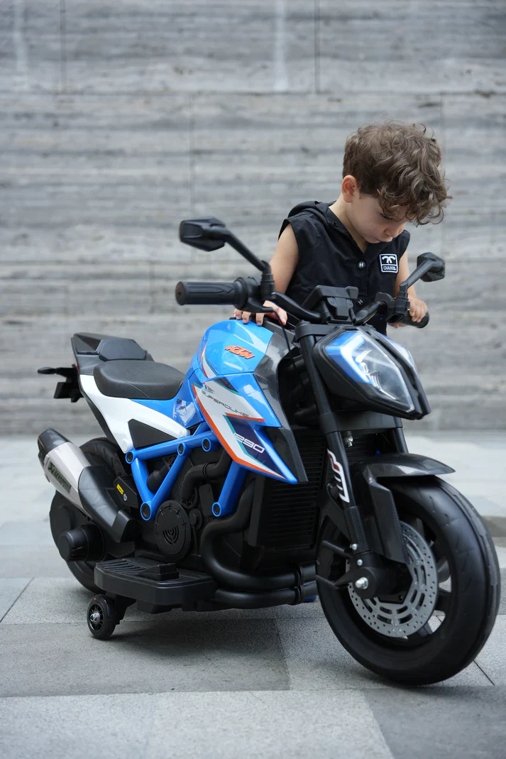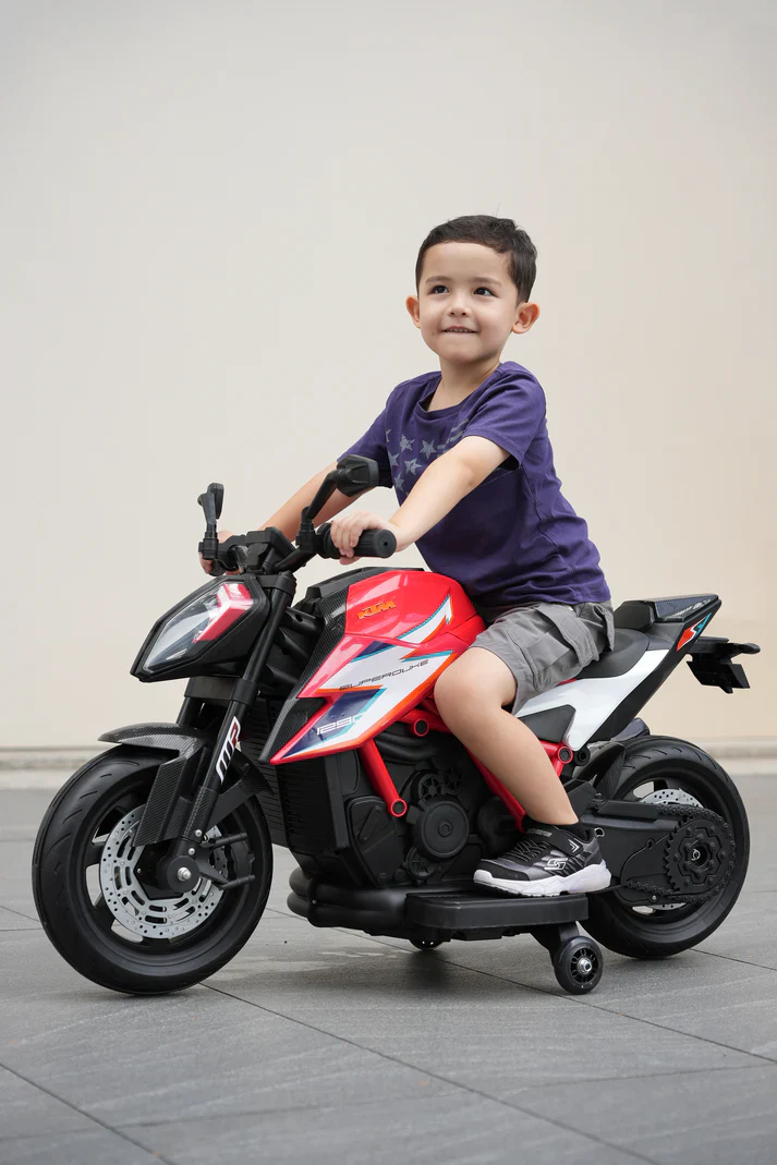 Official KTM Superduke 12v Ride On Kids Bike with Extra Power & Stabilizers - Red